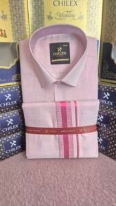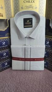 A tissue dhoti is a specific style of the traditional garment often made from a lightweight, fine fabric with delicate,shine texture.